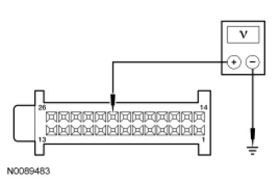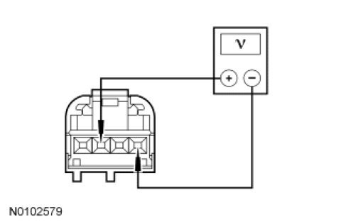 - Measure the voltage between ground and HVAC module C228B/C2356B-21, circuit VH414 (GN/BU), harness side.