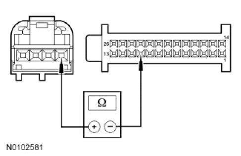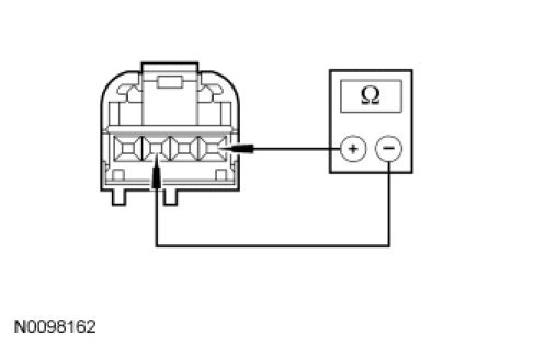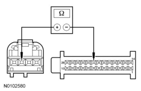 - Measure the resistance between HVAC module C228B/C2356B-21, circuit VH414 (GN/BU), harness side and ground.