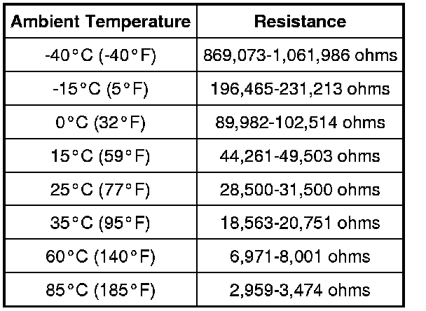 Under normal operation, the in-vehicle temperature sensor receives a ground from the HVAC module. The sensor varies its resistance with the temperature. As the temperature rises, the resistance falls. As the temperature falls the resistance rises. The HVAC module measures this resistance to determine the temperature at the sensor.