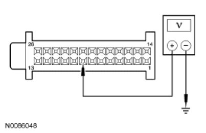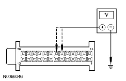 - Measure the voltage between ground and HVAC module C228A/C2356A-8, circuit VH436 (YE/VT), harness side.
