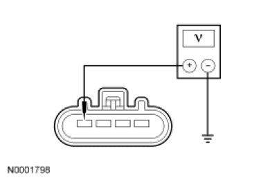 - Measure the voltage between blower motor speed control C271-4, circuit CH402 (YE/GN), harness side and ground.