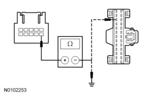 - Measure the resistance between the auto-dimming interior mirror C911-6, circuit VMC31 (GY/BU), harness side and the IPC C220-24, circuit VMC31 (GY/BU), harness side; and between the auto-dimming interior mirror C911-6, circuit VMC31 (GY/BU), harness side and ground.