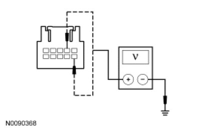 - Measure the voltage between the auto-dimming interior mirror C911-2, circuit VMC30 (BU/GY), harness side and ground; and between the auto-dimming interior mirror C911-6, circuit VMC31 (GY/BU), harness side and ground.