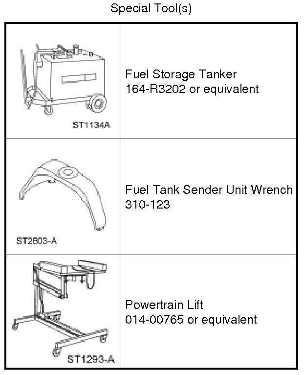 WARNING: When handling fuel, always observe fuel handling precautions and be prepared in the event of fuel spillage. Spilled fuel may be ignited by hot vehicle components or other ignition sources. Failure to follow these instructions may result in serious personal injury.