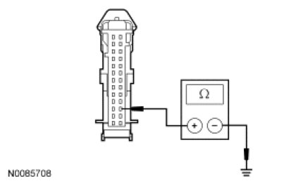 - Measure the resistance between the RFA module C2153e-22, circuit CPL58 (GY/OG), harness side and ground.