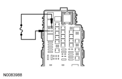 - Connect a fused jumper wire between the reversing lamps relay pin 3, circuit SBB26 (YE/RD), BJB face side and the reversing lamps relay pin 5, circuit CLS10 (GN/BN), BJB face side.