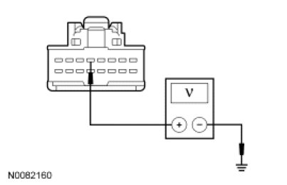 - Measure the voltage between the suspect exterior mirror connector, harness side as follows: