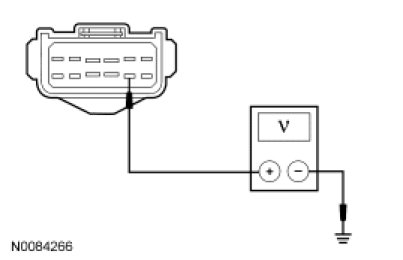 - Measure the voltage between the LH headlamp C1021-8, circuit CLF04 (BN/BU), harness side and ground; or between the RH headlamp C1041-8, circuit CLF05 (BU/GN), harness side and ground.