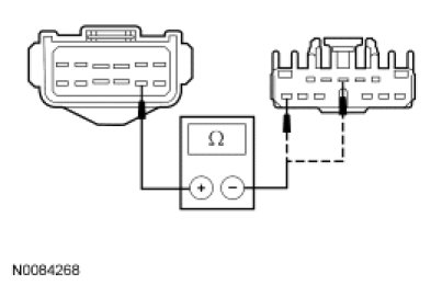- Measure the resistance between the LH headlamp C1021-8, circuit CLF04 (BN/BU), harness side and the SJB C2280e-13, circuit CLF04 (BN/BU), harness side; or between the RH headlamp C1041-8, circuit CLF05 (BU/GN), harness side and the SJB C2280e-4, circuit CLF05 (BU/GN), harness side.