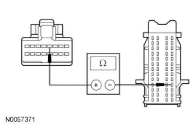 - Measure the resistance between the multifunction switch C202-4, circuit CLF27 (GN/BN), harness side and the SJB C2280b-43, circuit CLF27 (GN/BN), harness side.