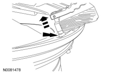 NOTICE: Do not allow the tire beads to move beyond the wheel mid-plane (middle of the wheel) when separating the beads from the wheels, damage to the Tire Pressure Monitoring System (TPMS) sensor may occur.