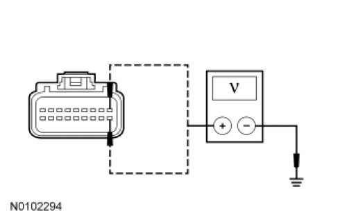 - Measure the voltage between the C-CM C1582-1, circuit SBB13 (GY/RD), harness side and ground; and between the C-CM C1582-10, circuit CBB34 (VT/BN), harness side and ground