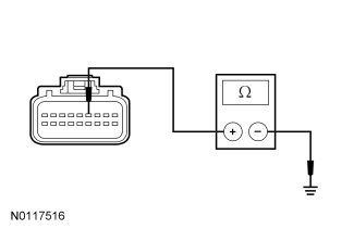 - Measure the resistance between the C-CM C1582-4, circuit GD120 (BK/GN), harness side and ground.