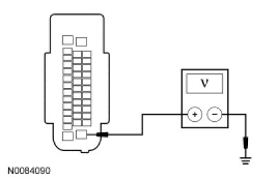 - Measure the voltage between the HCM C1600-1, circuit CBP33 (WH/BN), harness side and ground.