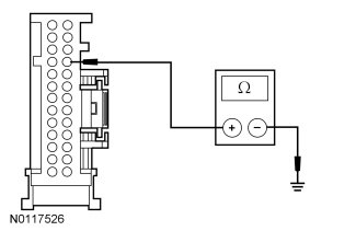 - Measure the resistance between the HVAC module C228a-23 or C2356a-23, circuit GD114 (BK/BU), harness side and ground.