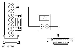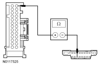 - Measure the resistance between the HVAC module C228a-25 or C2356a-25, circuit VDB06 (GY/OG), harness side and the DLC C251-3, circuit VDB06 (GY/OG), harness side.