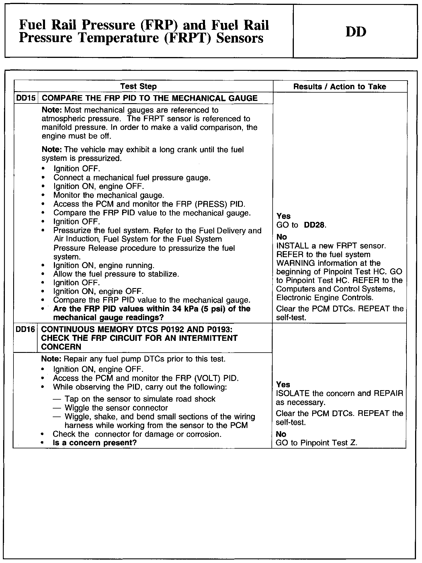 PINPOINT TEST DD: FUEL RAIL PRESSURE (FRP) AND FUEL RAIL PRESSURE TEMPERATURE (FRPT) SENSORS
