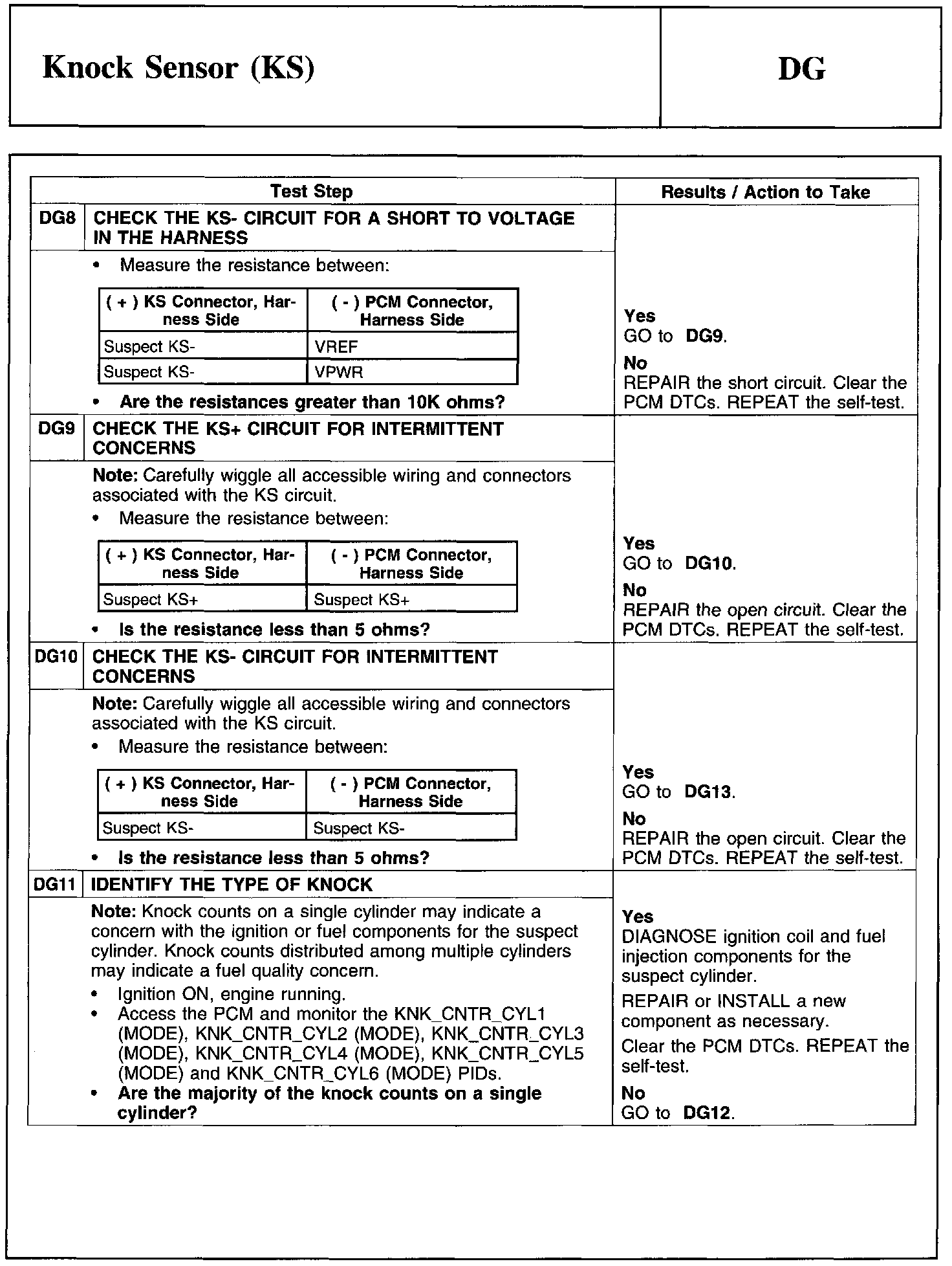 PINPOINT TEST DG: KNOCK SENSOR (KS)