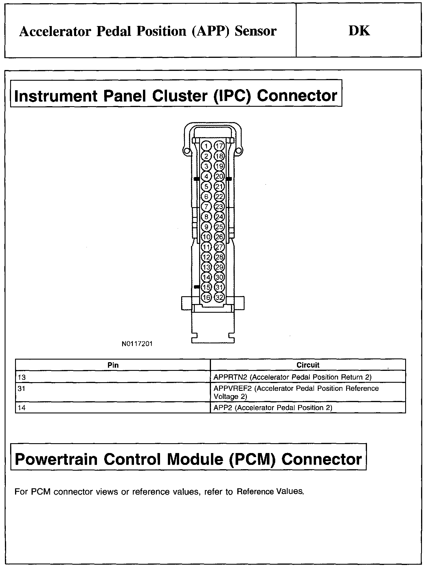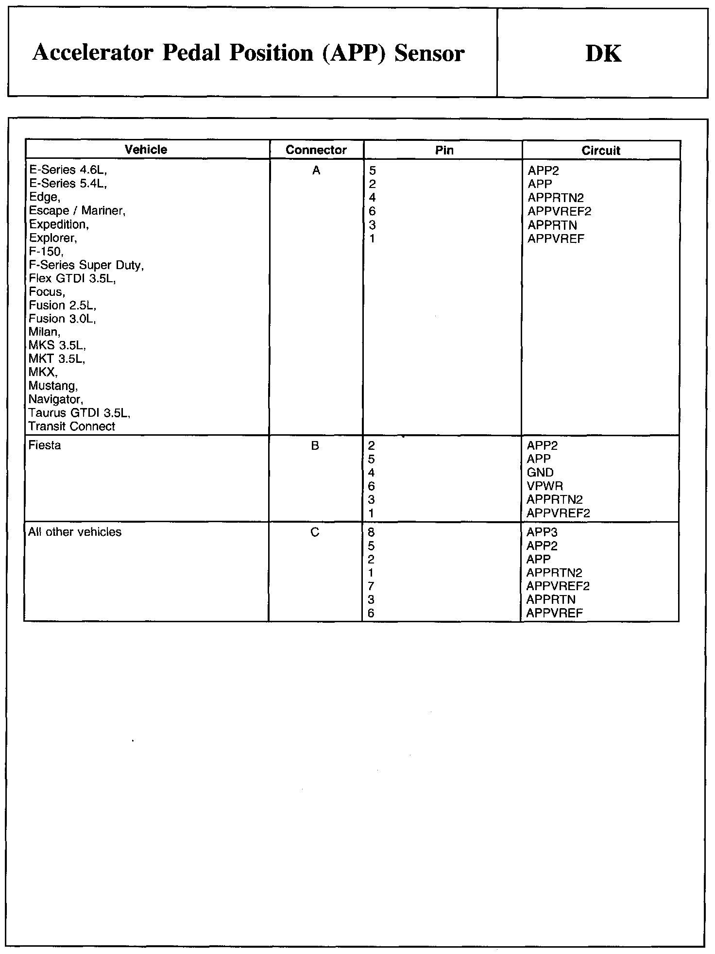 PINPOINT TEST DK: ACCELERATOR PEDAL POSITION (APP) SENSORNote And Accelerator Pedal Position (APP) Sensor Connector:
