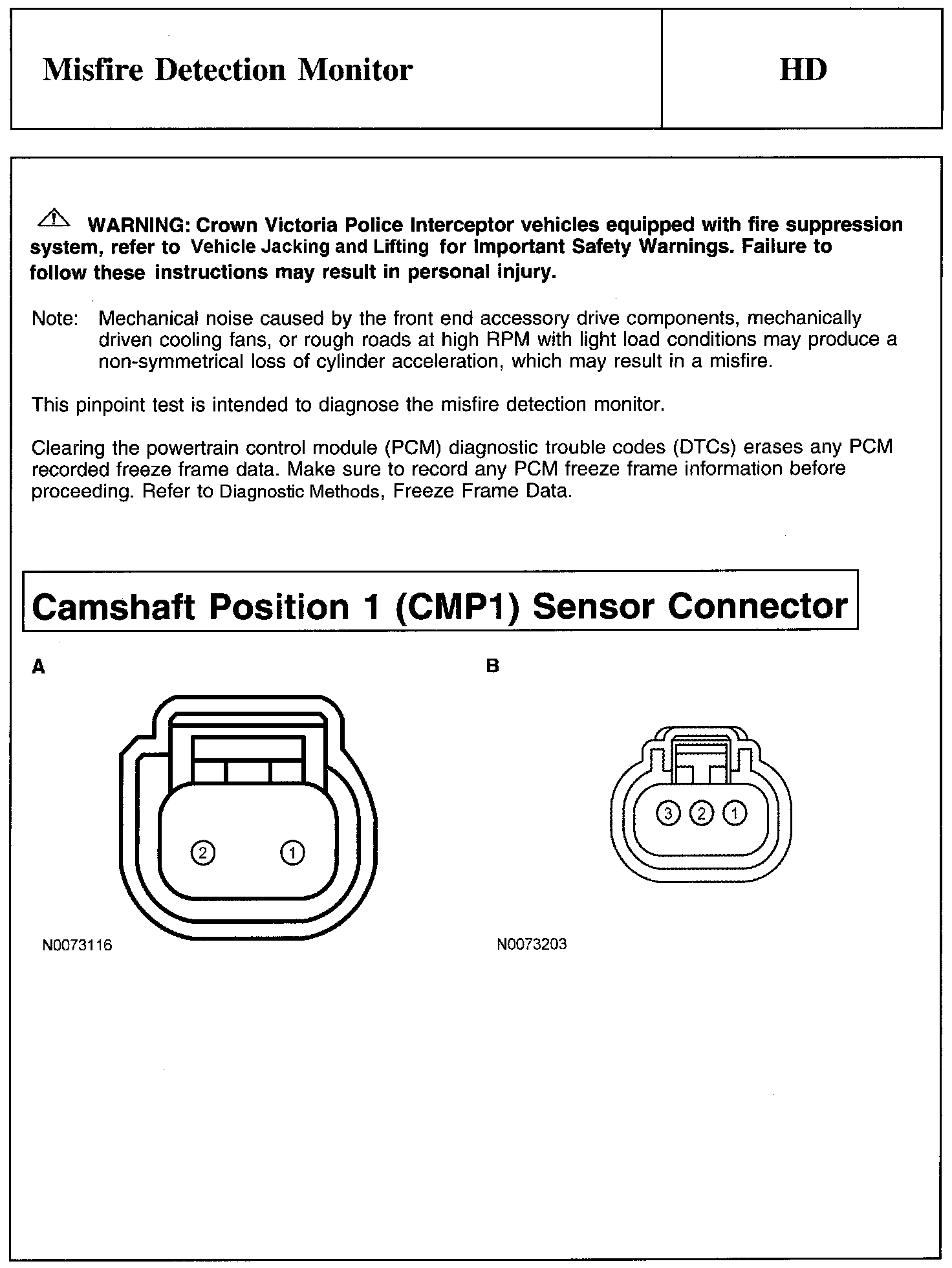 Warning, Note And Camshaft Position 1 (CMP1) Sensor Connector: