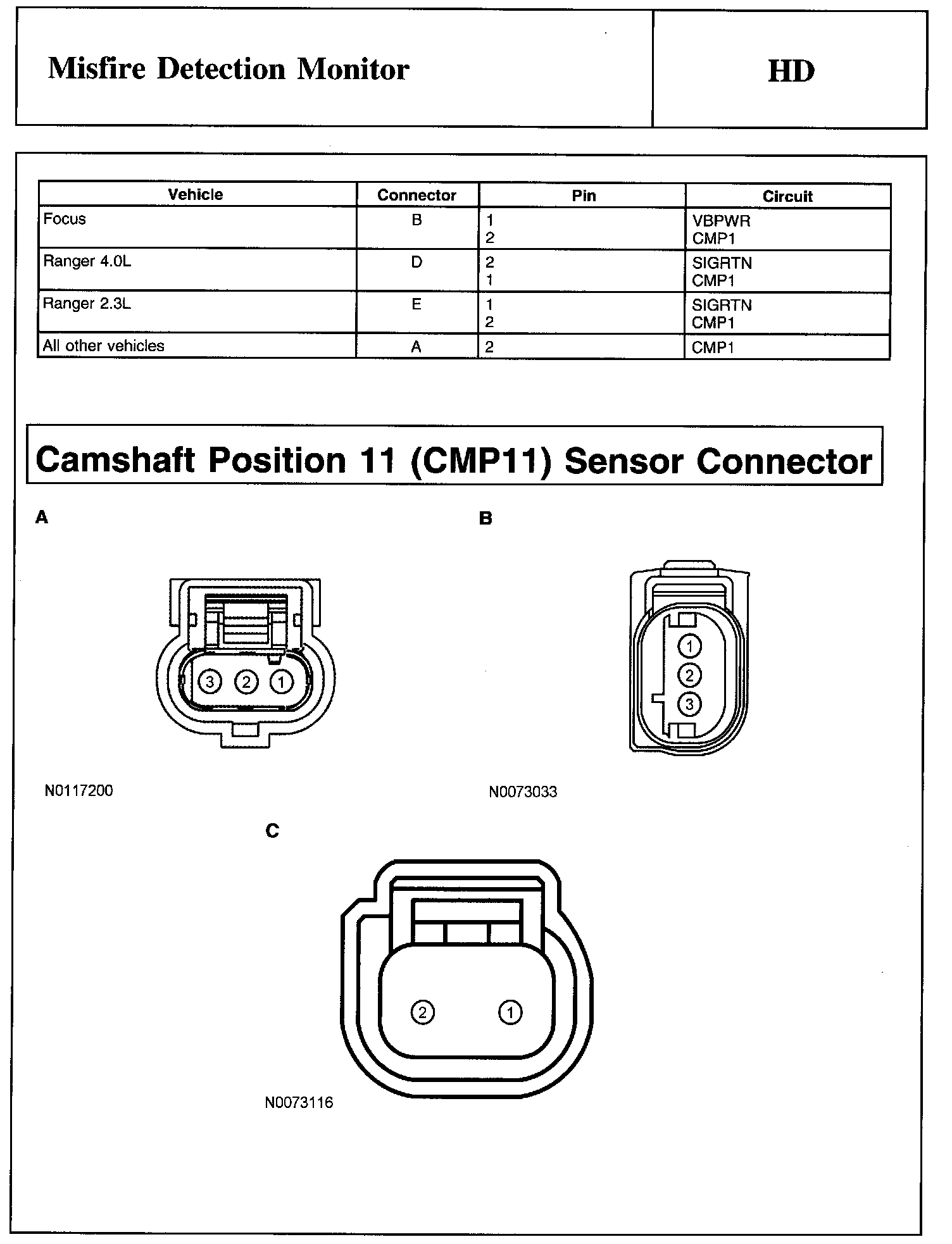 Camshaft Position 1 (CMP1) Sensor Connector: