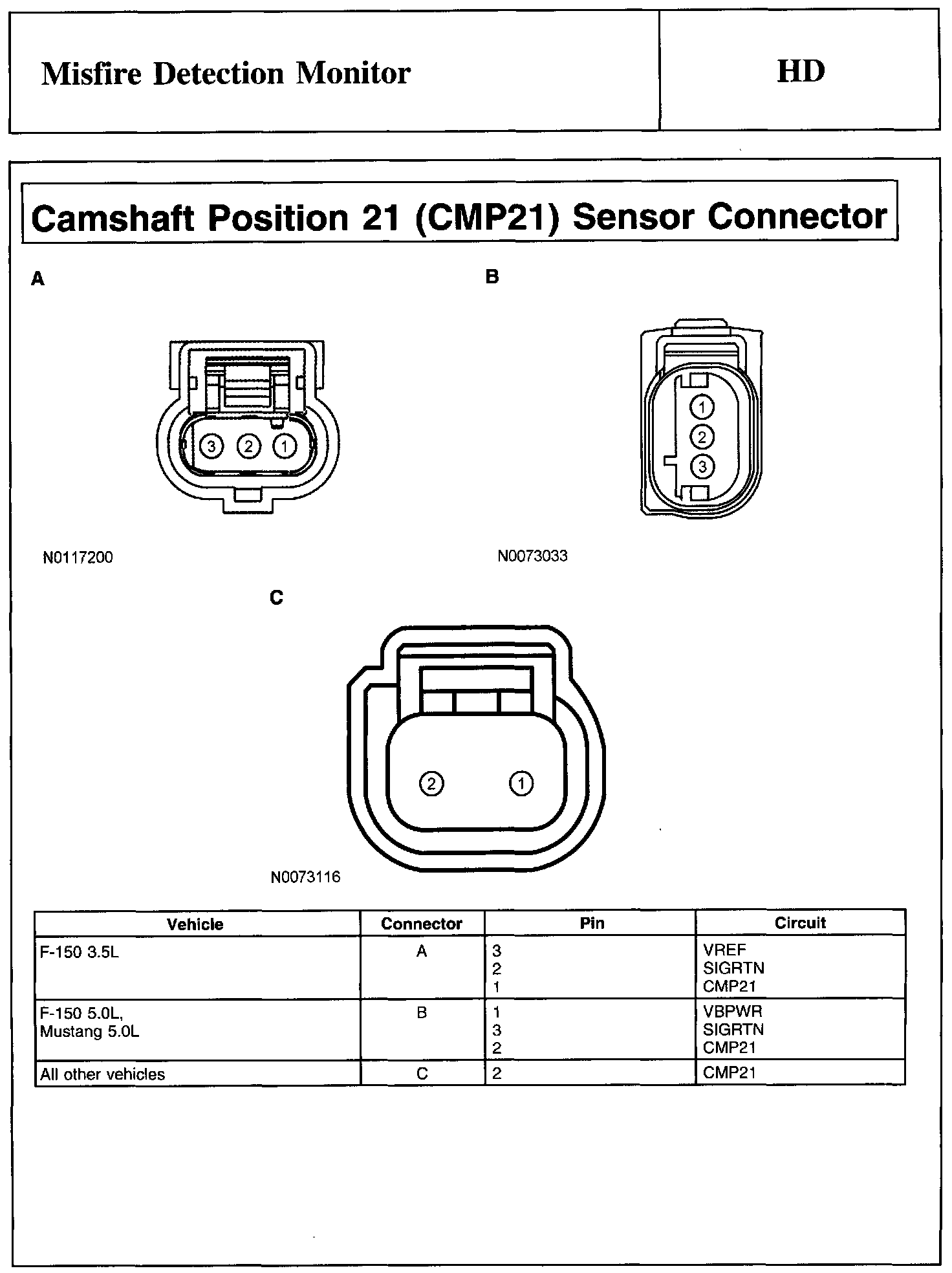 Camshaft Position 21 (CMP21) Sensor Connector:
