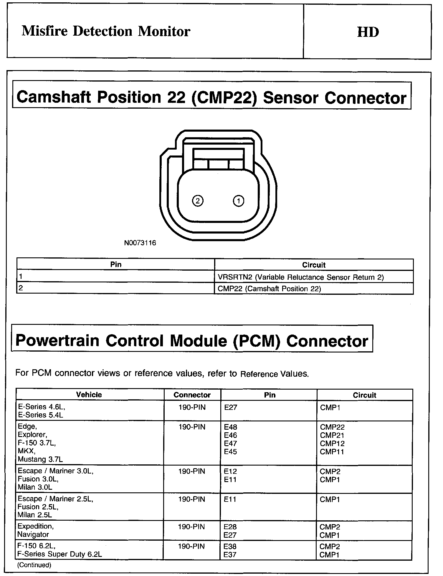 Camshaft Position 22 (CMP22) Sensor Connector And Powertrain Control Module (PCM) Connector: