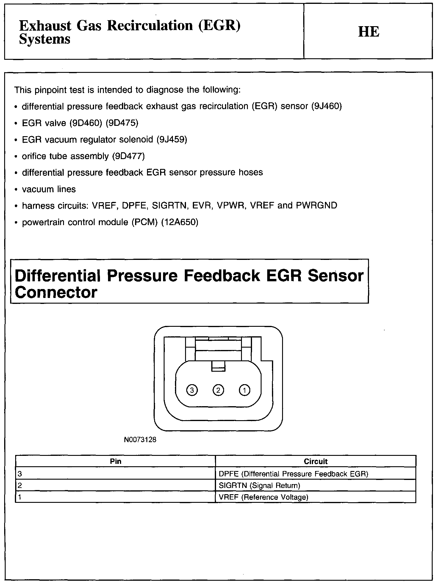 PINPOINT TEST HE: EXHAUST GAS RECIRCULATION (EGR) SYSTEMSDifferential Pressure Feedback EGR Sensor Connector: