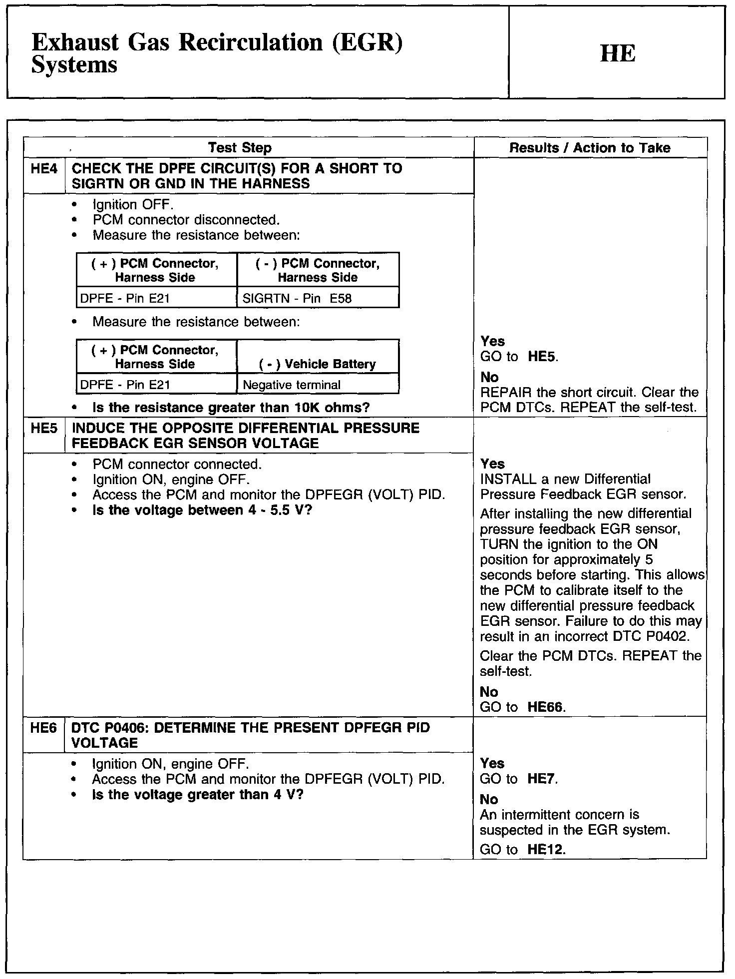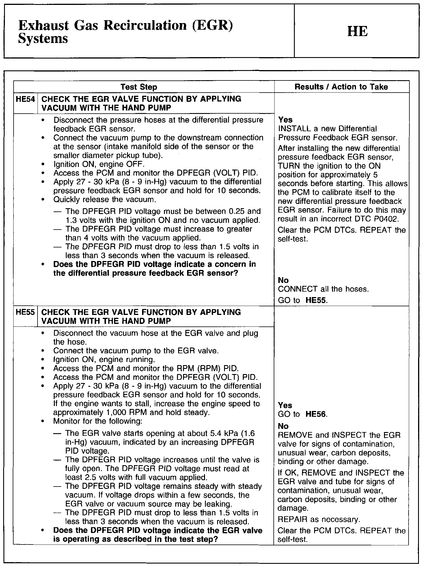 Test HE: Exhaust Gas Recirculation (EGR) Systems