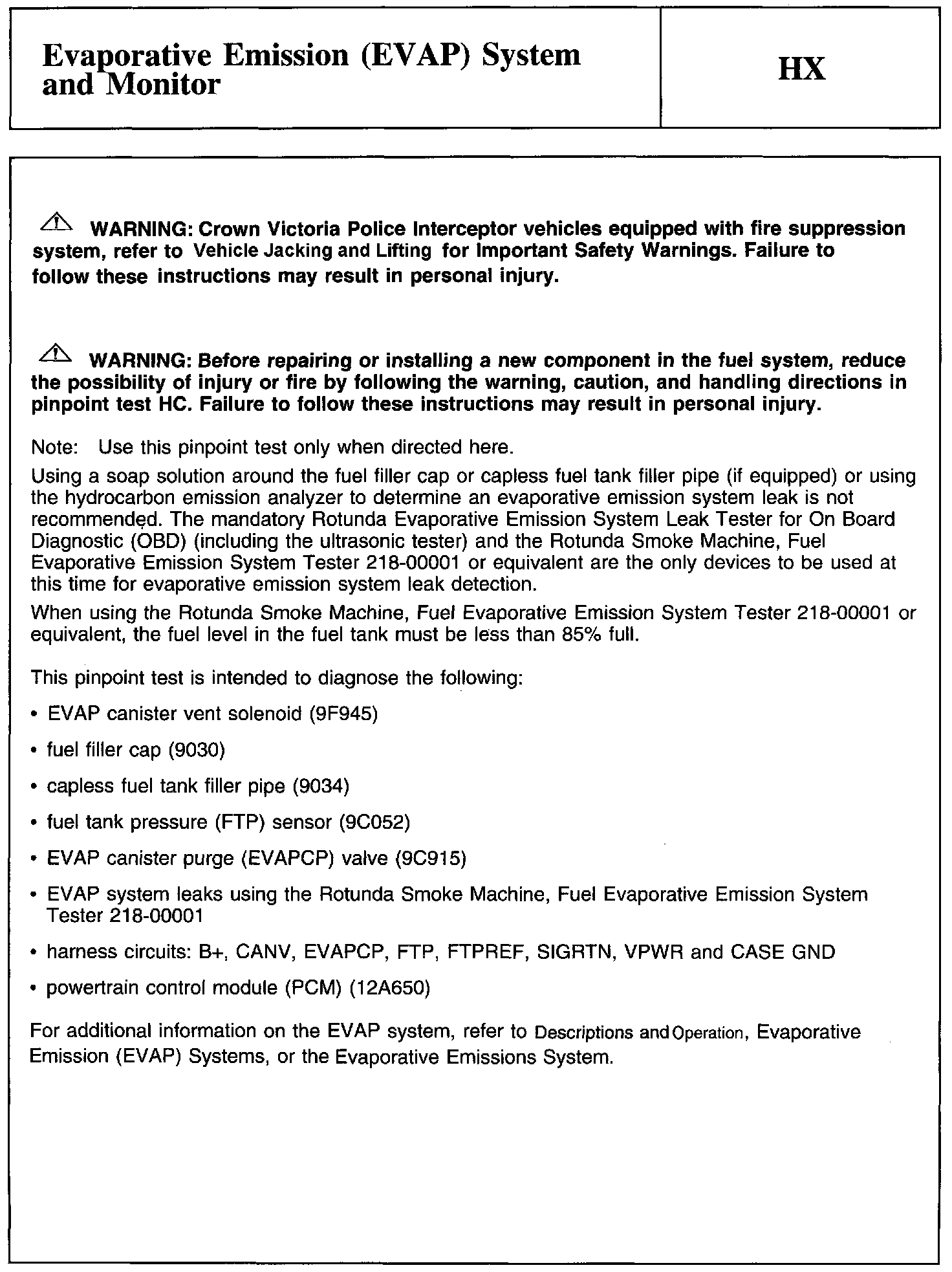 PINPOINT TEST HX: EVAPORATIVE EMISSION (EVAP) SYSTEM AND MONITOR