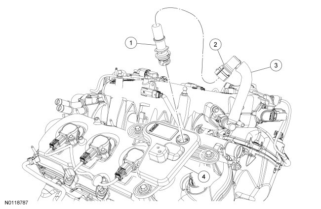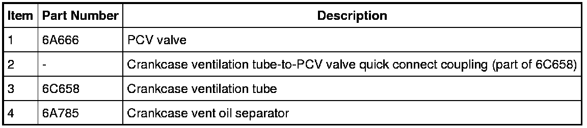 1. Disconnect the crankcase ventilation tube-to-PCV valve quick connect coupling. For additional information, refer to Fuel System - General Information Service and Repair.