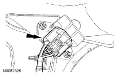 1. NOTE: The Fuel Pump (FP) control module is mounted to the panel behind the rear seat backrest cushion. The FP control module electrical connector can be accessed through the luggage compartment.