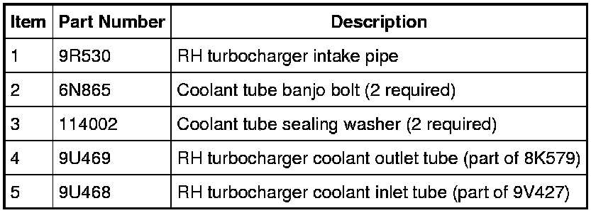 15. Remove the 2 coolant tube banjo bolts and the RH turbocharger coolant tubes.