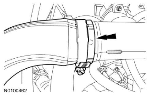 24. Loosen the clamp and remove the RH CAC tube from the RH turbocharger.