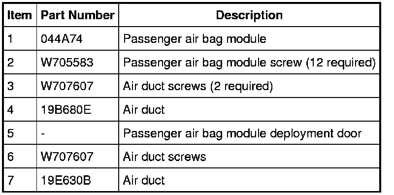 4. Remove the passenger air bag module.