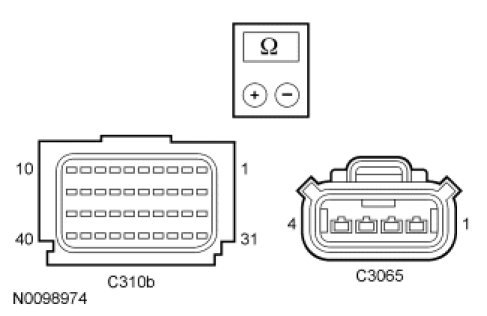 - Measure the resistance between RCM C310B, harness side and driver safety belt buckle C3065, harness side using the following chart.