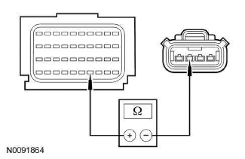 - Measure the resistance between driver safety belt buckle C3065-4, circuit RR137 (BU/GY), harness side and ground.