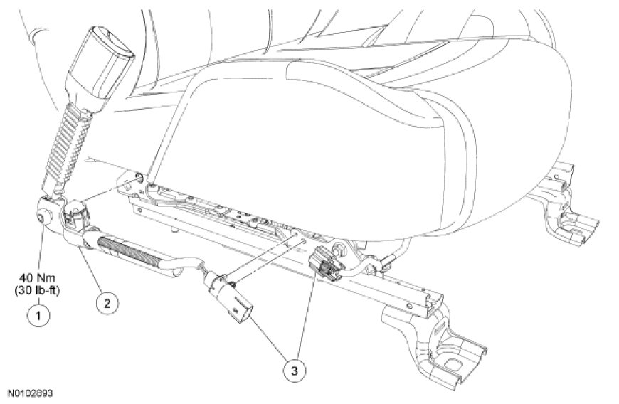 5. Install the seat. For additional information, refer to Seating Seat - Front.