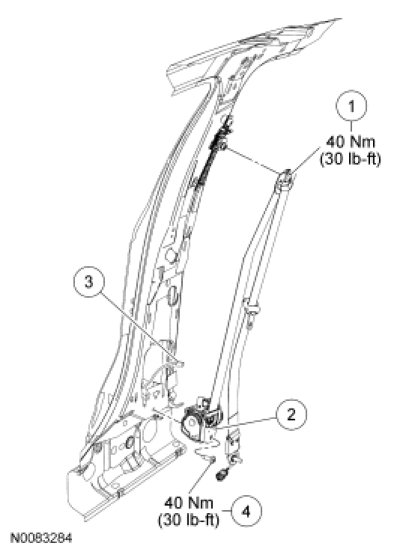 2. Remove the upper B-pillar trim panel. For additional information, refer to Interior Trim and Ornamentation B-Pillar Trim Panel.