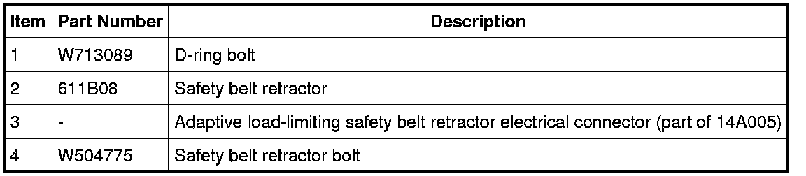 WARNING: After any crash, all of the following safety belt assemblies and attaching hardware must be inspected to verify correct function: