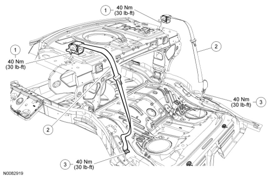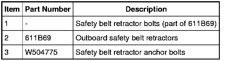 WARNING: After any crash, all of the following safety belt assemblies and attaching hardware must be inspected to verify correct function: