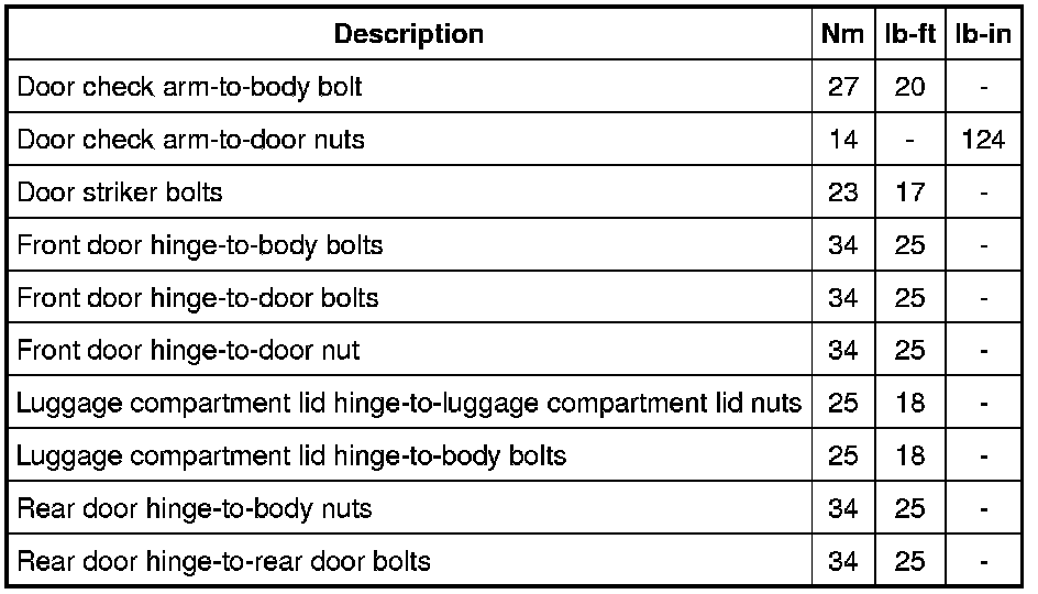Torque Specifications