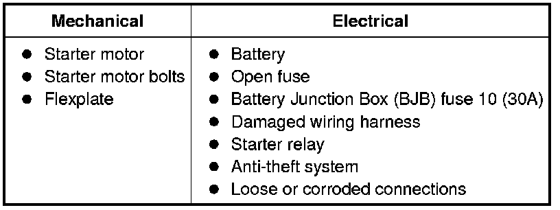 NOTE: The anti-theft system must be functioning correctly before a logical starting system diagnosis can be carried out. Address anti-theft system concerns before continuing. Refer to Anti-Theft - Passive Anti-Theft System (PATS) Testing and Inspection.