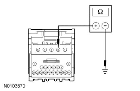 - Measure the resistance between RFA module C2153B-2, circuit CDC35 (BU/WH), harness side and ground.