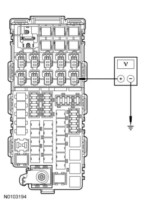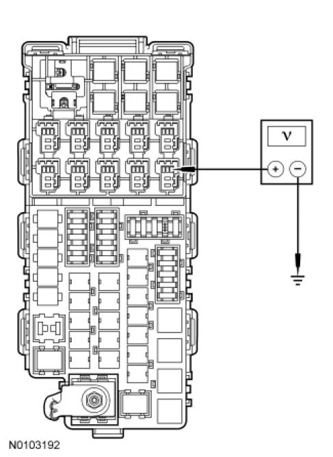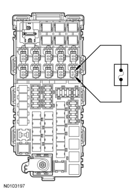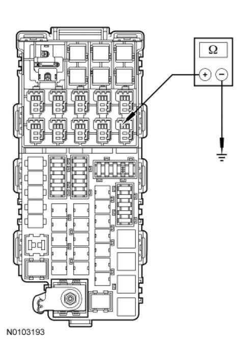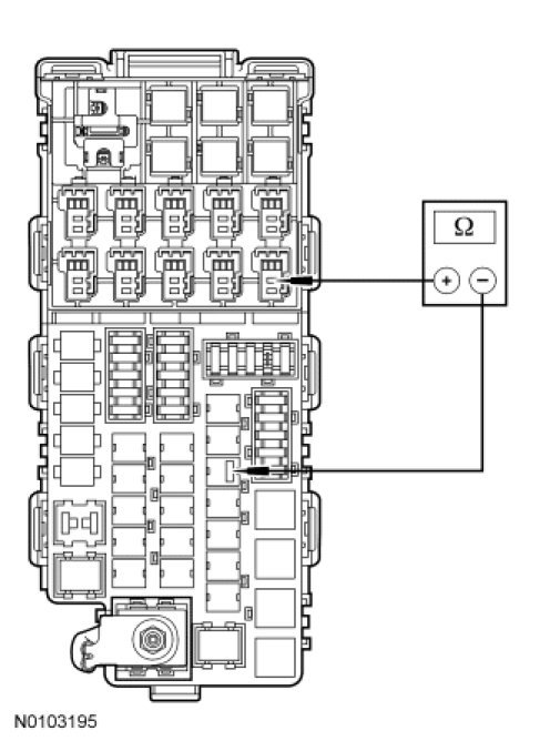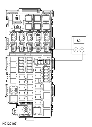 - Measure the resistance between BJB fuse 36 (20A), input side and BJB run/start relay pin 3, circuit CBB33 (WH/BN).