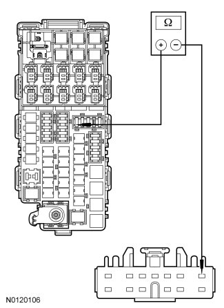 - Measure the resistance between BJB fuse 36 (20A), output side and SJB C2280E-1, circuit CBBC36 (BU/BN), harness side.