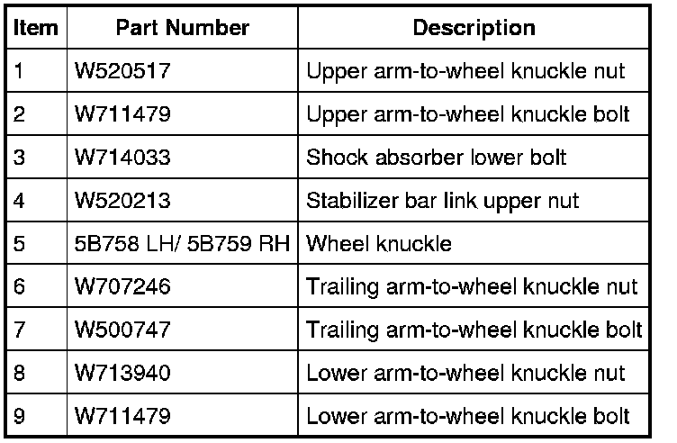 NOTICE: Suspension fasteners are critical parts because they affect performance of vital components and systems and their failure may result in major service expense. New parts must be installed with the same part numbers or equivalent part, if replacement is necessary. Do not use a replacement part of lesser quality or substitute design. Torque values must be used as specified during reassembly to make sure of correct retention of these parts.