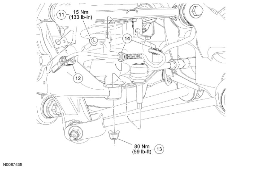 13. Tighten the toe link-to-wheel knuckle nut to 80 Nm (59 lb-ft).