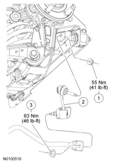 - To install, tighten the new nut to 63 Nm (46 lb-ft).