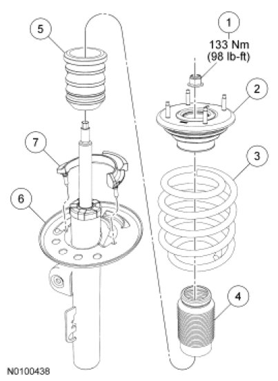 2. WARNING: Do not attempt to disassemble the shock absorber and spring assembly without using a spring compressor. Assemblies are under extreme load. Failure to follow this instruction may result in serious personal injury.